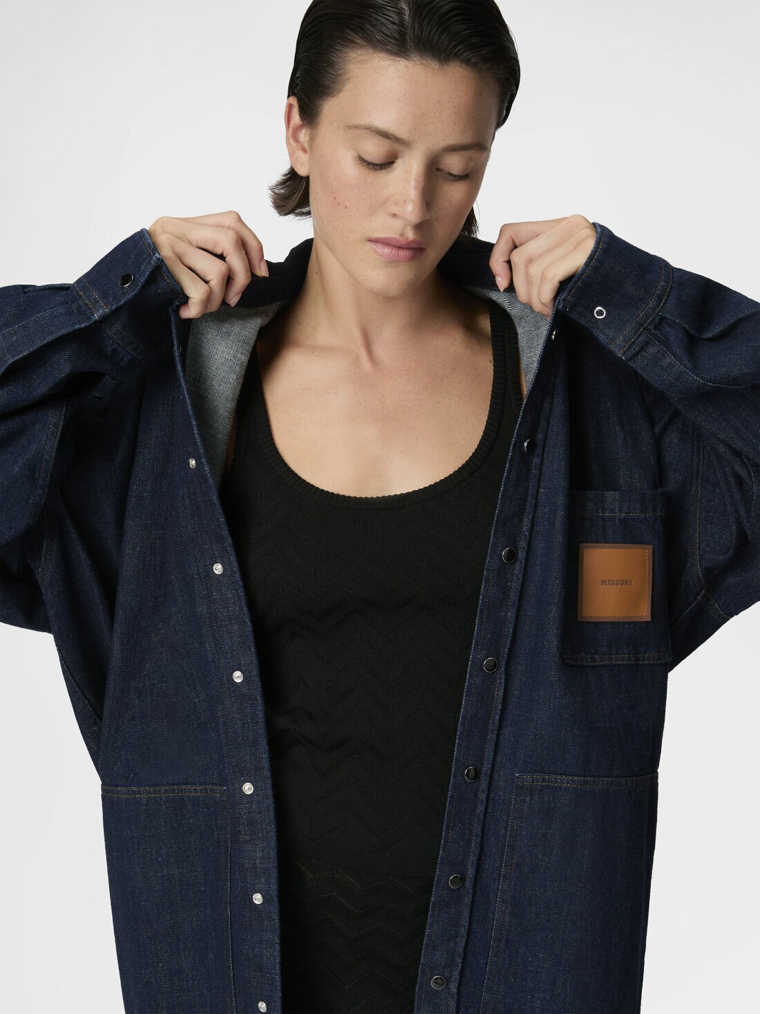 Missoni sperimenta forme nuove con questa overshirt in denim di cotone da donna, un modello dal taglio over che reinterpreta lo spirito casual con un’attitude moderna e rilassata. Le maniche lunghe e il patch con logo completano un capo dallo stile autentico e contemporaneo, realizzato in denim 100% cotone.