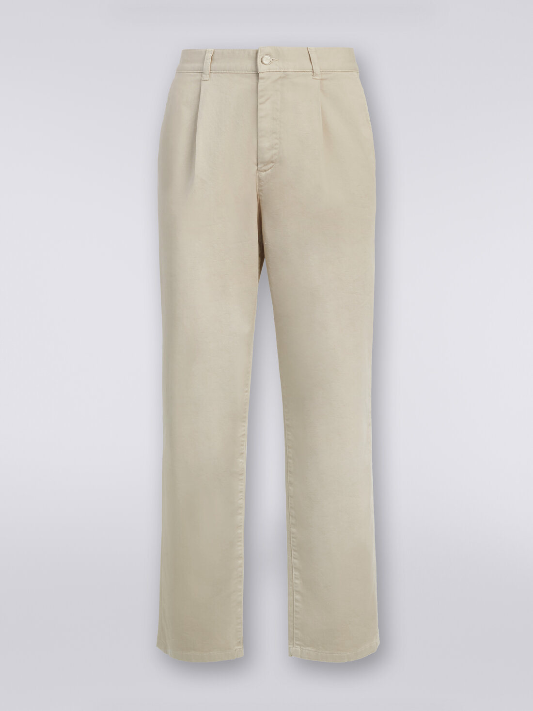 I classici pantaloni chino da uomo in cotone acquisiscono, grazie all'intervento di Missoni, un tocco contemporaneo che li trasforma nel perfetto complemento del look di tutti i giorni. Caratterizzati dal fit relaxed e dal piccolo monogramma ricamato a contrasto, presentano pinces in vita e pratiche tasche laterali.