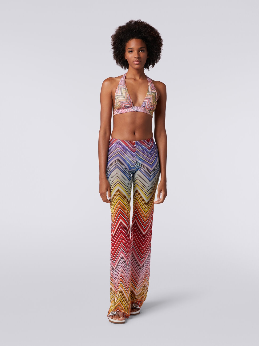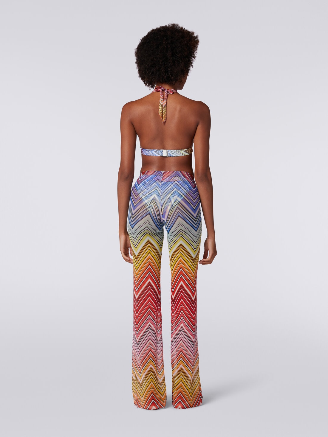 Resa ottica d'impatto e design ispirazione Seventies per i pantaloni copricostume da donna in tulle stretch con fondo leggermente svasato ed elastico in vita. Perfetti per beach look esclusivi all'insegna di una nuova summer of love.