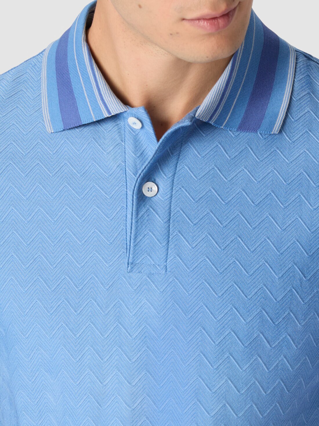 Il motivo zig zag tono su tono anima questa polo da uomo in cotone jacquard, arricchita da un colletto a righe che ne sottolinea il carattere distintivo. Un classico del guardaroba maschile reinterpretato con l’inconfondibile raffinatezza Missoni.