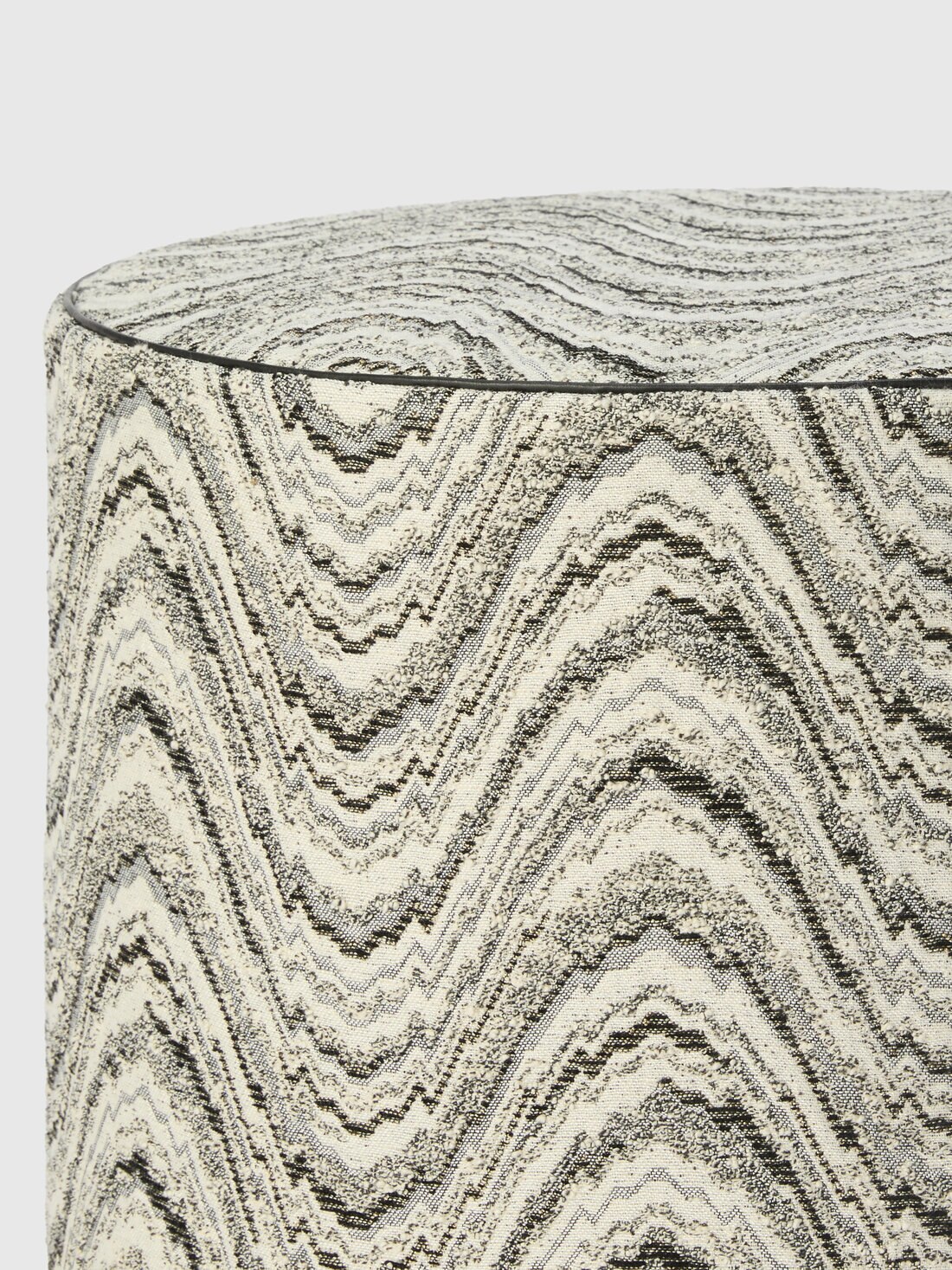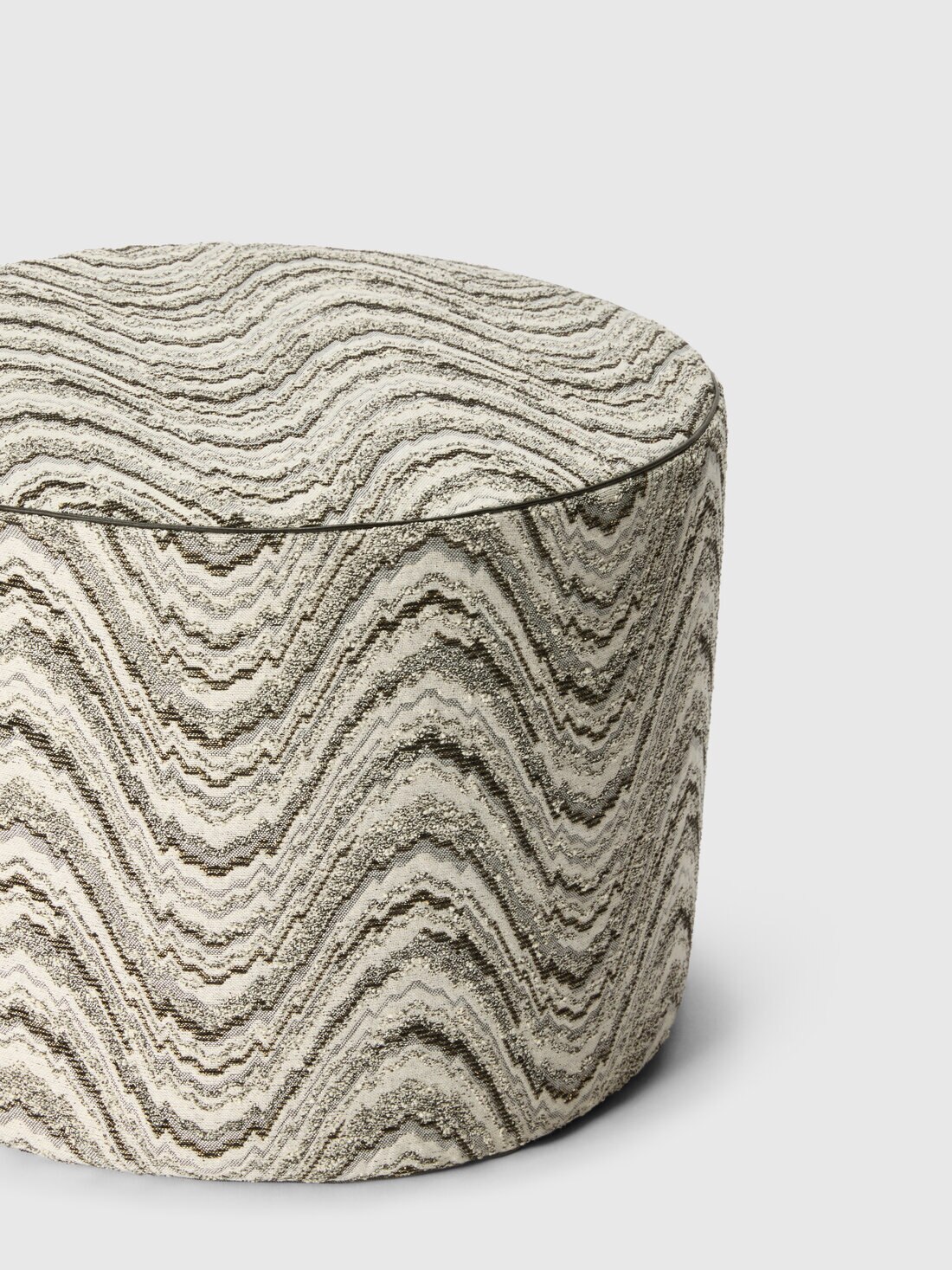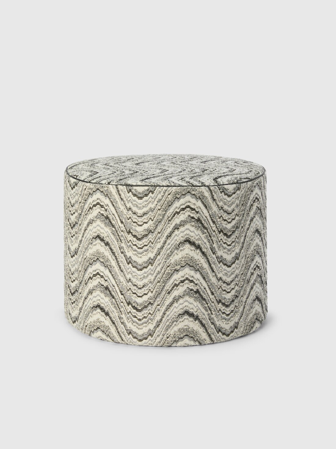 Il pouf cilindrico Ortigia 40x30 cm, realizzato in misto viscosa e cotone, è valorizzato dal motivo a onde che anima la superficie con un ritmo fluido e continuo. Un complemento d’arredo compatto e decorativo, pensato per inserire un accento grafico raffinato negli spazi interni.