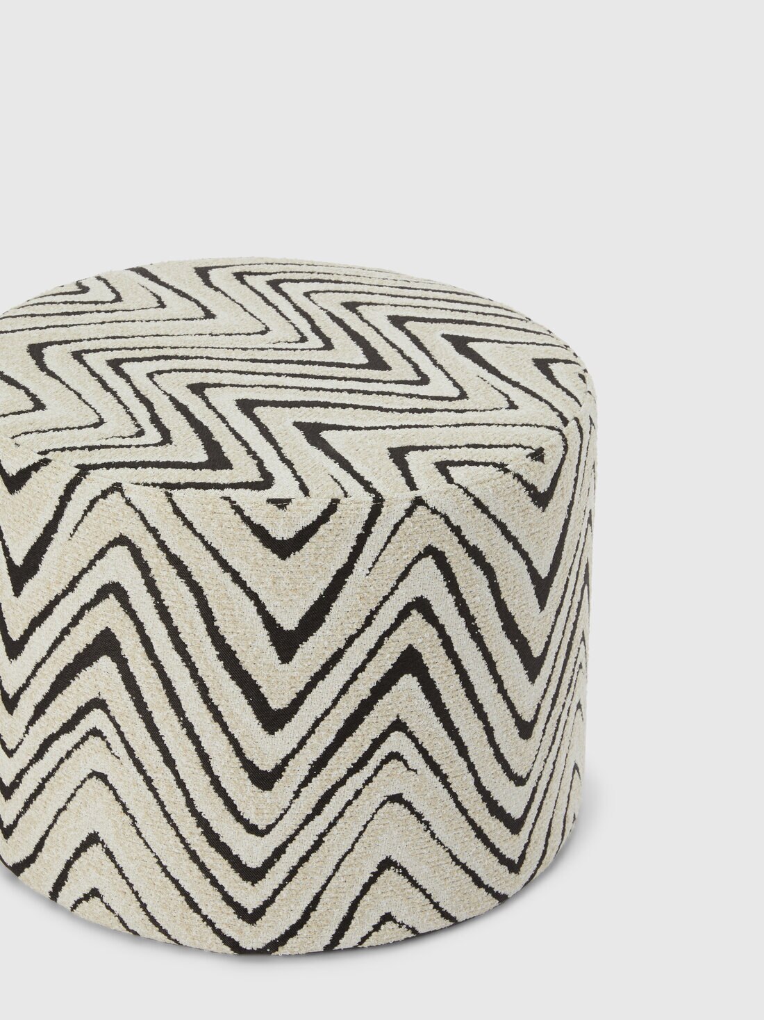 Sinuosi zig zag sulla superficie del pouf sembrano alludere al movimento delle liane. Savana è un pouf cilindrico di 40x30 cm, perfetto per gli spazi esterni, arricchito dalla lavorazione che produce un affascinante effetto bouclé. L'elegante etichetta con il logo Missoni completa questo complemento d'arredo ispirato alla natura selvaggia.
