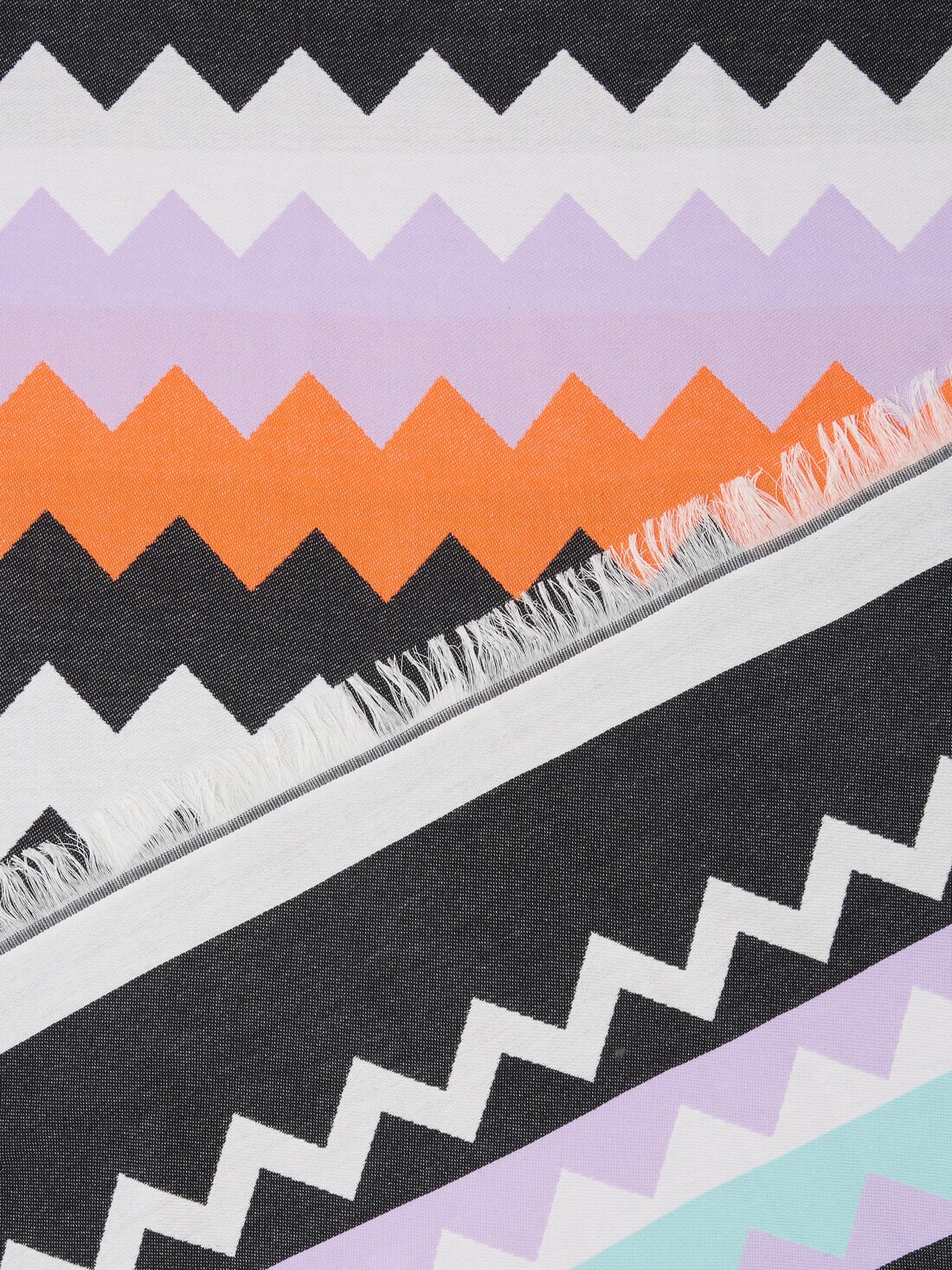 Energia e stile si incontrano nel telo mare Fouta Missoni, realizzato in cotone nelle dimensioni di 140x180 cm. L'iconico motivo a zig zag, reinterpretato in chiave vibrante, dona dinamismo e carattere, trasformando ogni momento di relax in spiaggia o in piscina in un’esperienza di puro design. Leggero e versatile, è l’accessorio perfetto per chi ama un’eleganza contemporanea senza rinunciare al comfort.