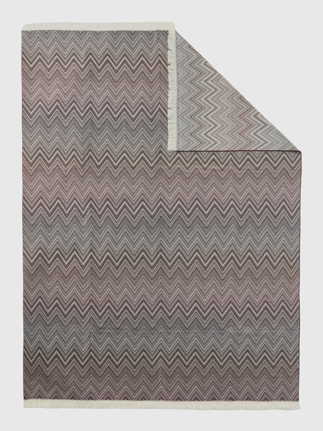 Le caratteristiche ci sono tutte per fare del plaid 130x190 cm Timmy il rappresentante più autorevole della biancheria per il letto. Merito del tessuto di pura lana, del motivo chevron digradante e dei bordi sfrangiati.