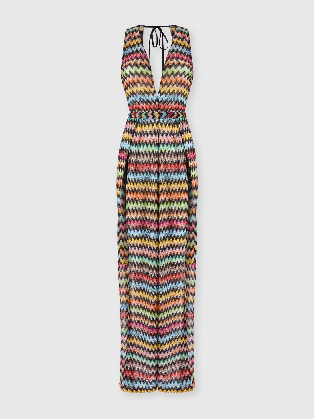 Tuta in viscosa lamé con micro zig zag e scollatura a V