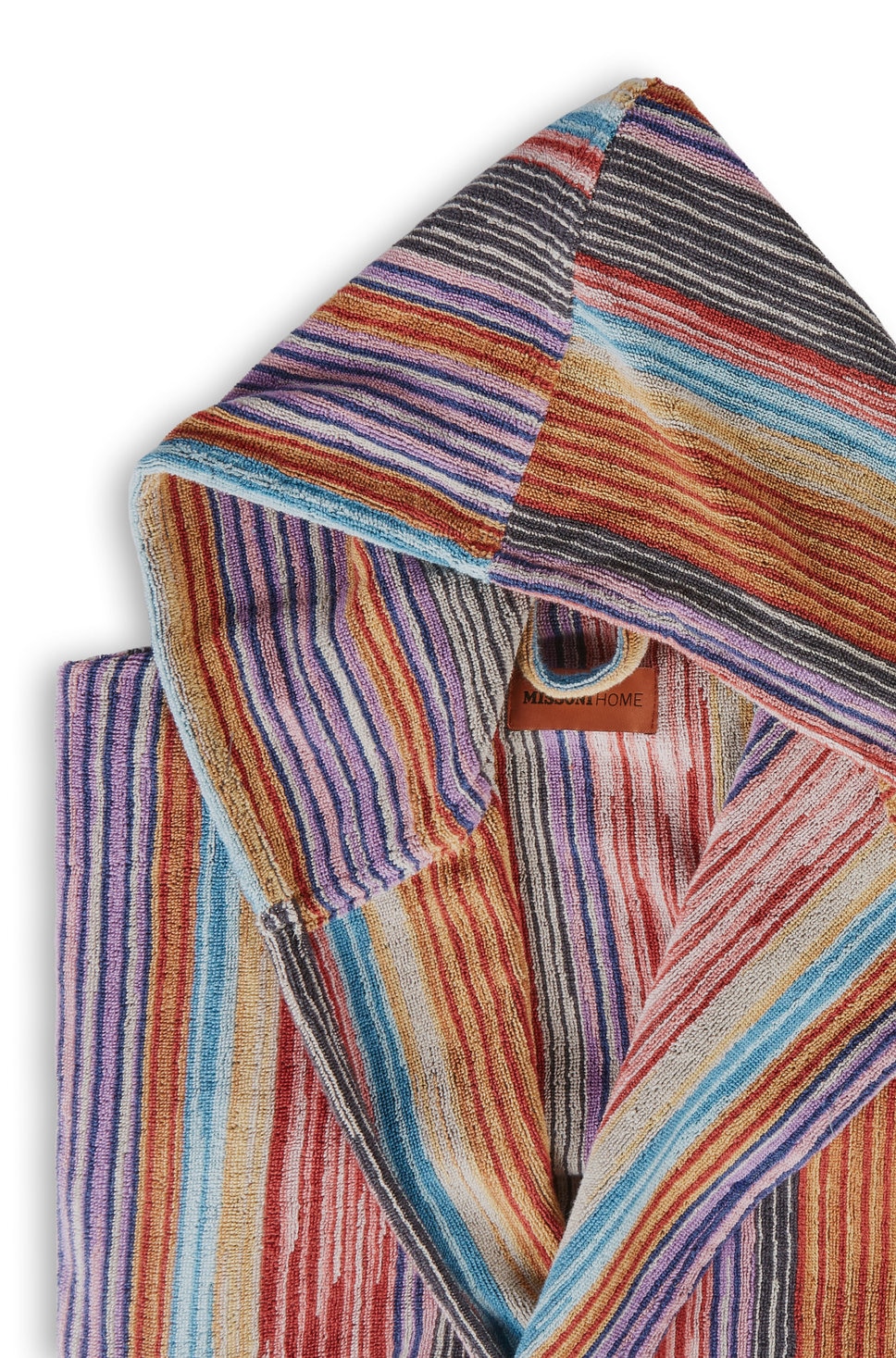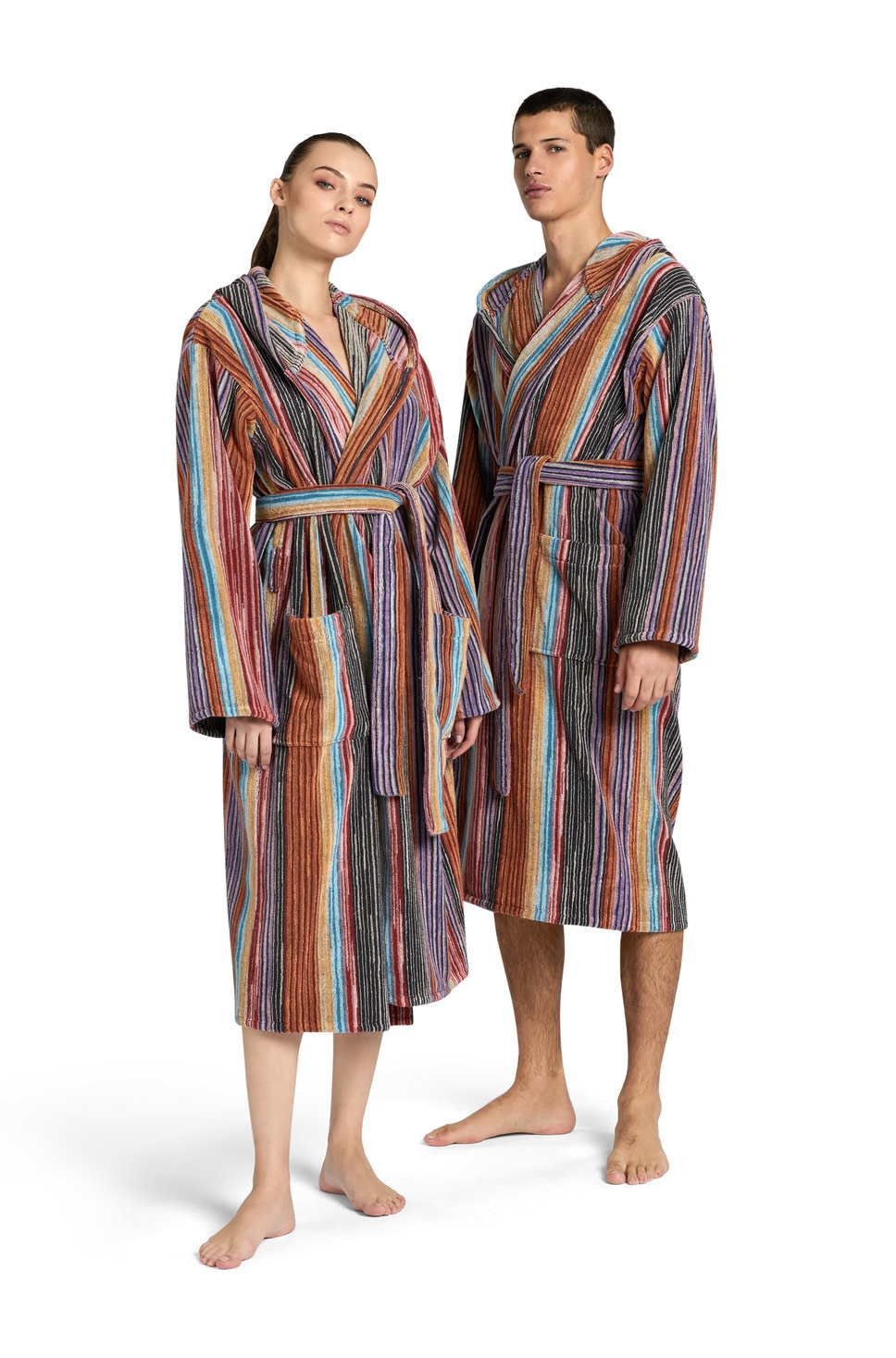 Un'esplosione multicolor di vitalità e tutto il dinamismo di accostamenti cromatici decisi, inseriti in una ritmata teoria di chevron, per la texture dai toni dégradé della linea di spugne Bradley. MissoniHome riesce così ad infondere in ogni sua creazione per la casa la propria inconfondibile anima, accendendo qualsiasi ambiente con la sua idea di stile in continua evoluzione