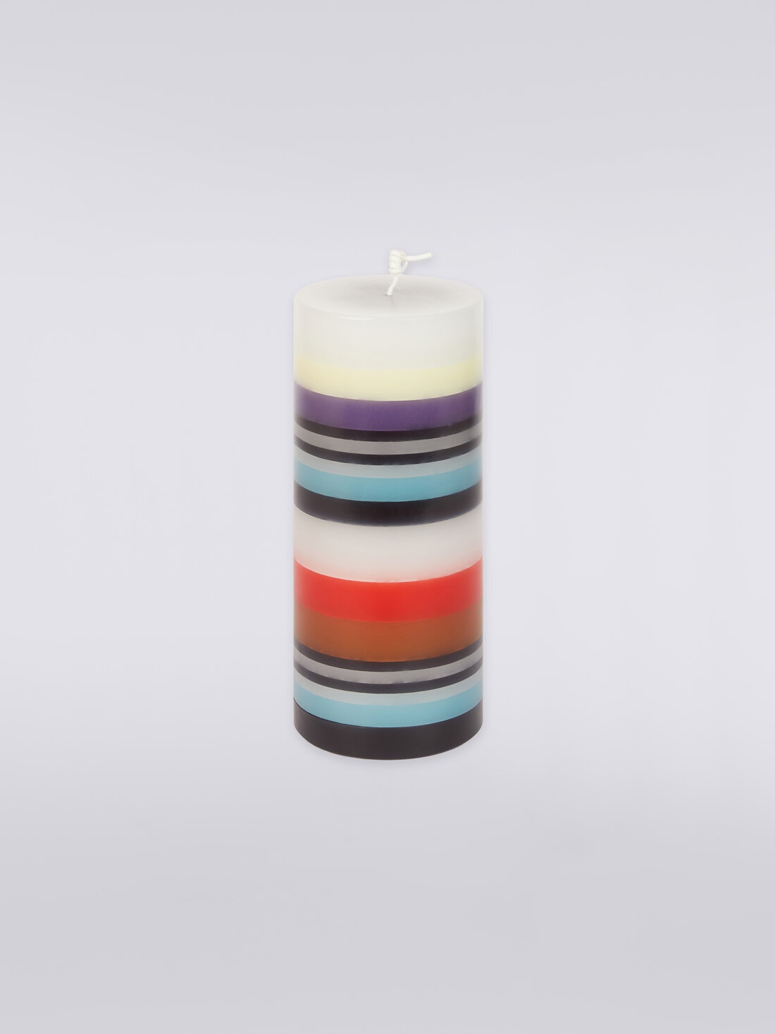 È una calibrata sinfonia di colori in gradazione, ritmati dal bianco e dal nero, quella che accende le righe orizzontali impresse sulla candela Totem. Il complemento d'arredo, proposto in un formato 9x24 cm che ne evidenzia il carattere da protagonista, è perfetto per riscaldare ogni ambiente domestico.