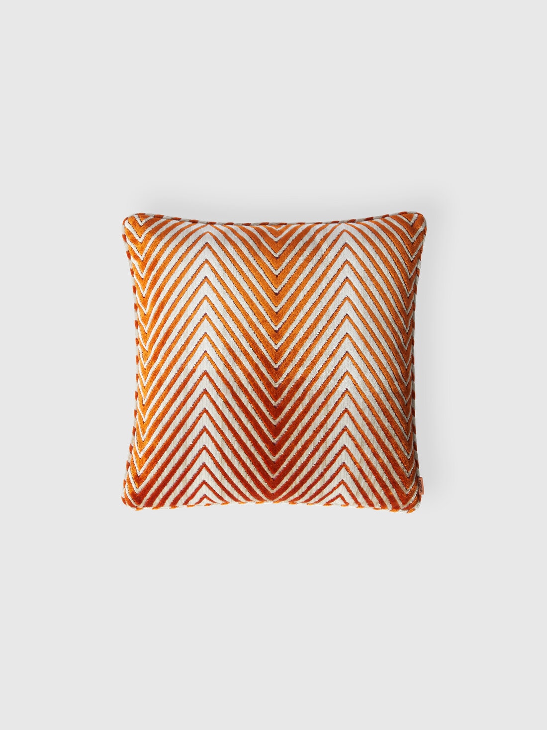 Un enigmatico susseguirsi di zig zag quasi selvaggi, con un tocco vellutato ed esotico, caratterizza il cuscino 40x40 cm in misto viscosa. Completo di piping tubolare e un'elegante etichetta logo, questo accessorio è perfetto per aggiungere un tocco di raffinato cosmopolitismo a qualsiasi ambiente, aggiungendo calore e stile con la sua presenza affascinante.