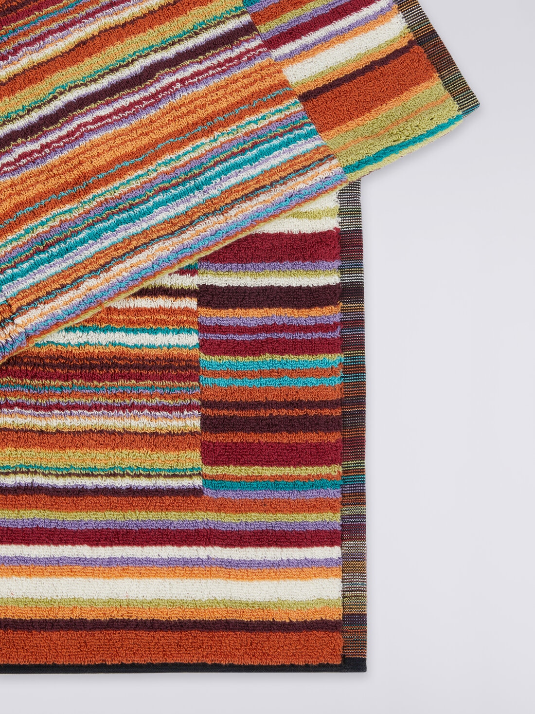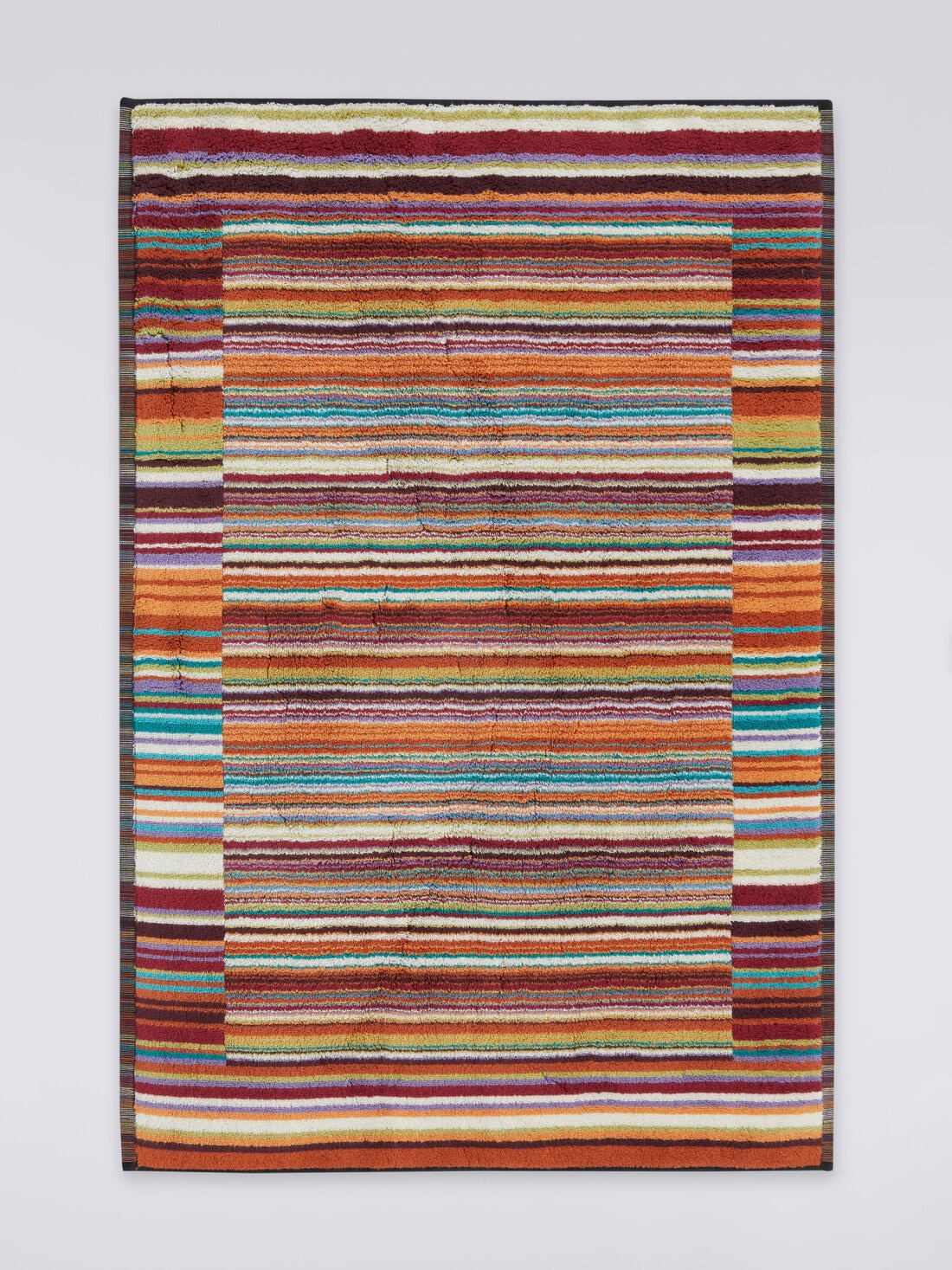Il ritmo ipnotico e quasi musicale delle righe verticali, sottolineato dalle campiture di spessore diverso dei profili, caratterizza il tappetino bagno 60x90 cm Jazz. MissoniHome mescola suggestioni geometriche e raffinate variazioni cromatiche per dare un guizzo inconfondibile alla sala da bagno.
