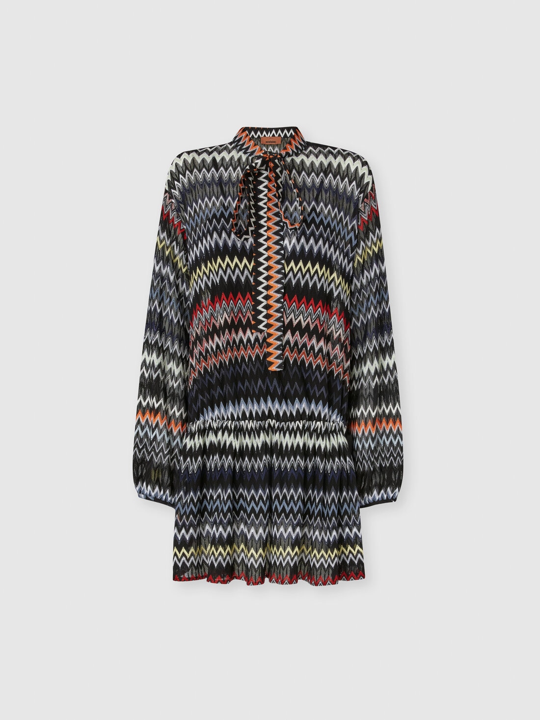 Mini-abito in viscosa e cotone zig zag con fiocco