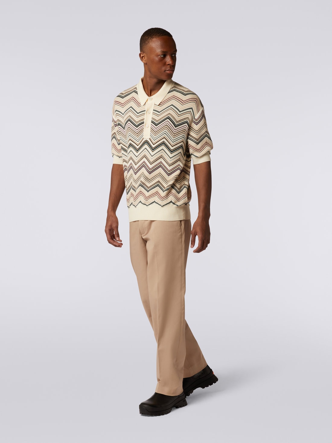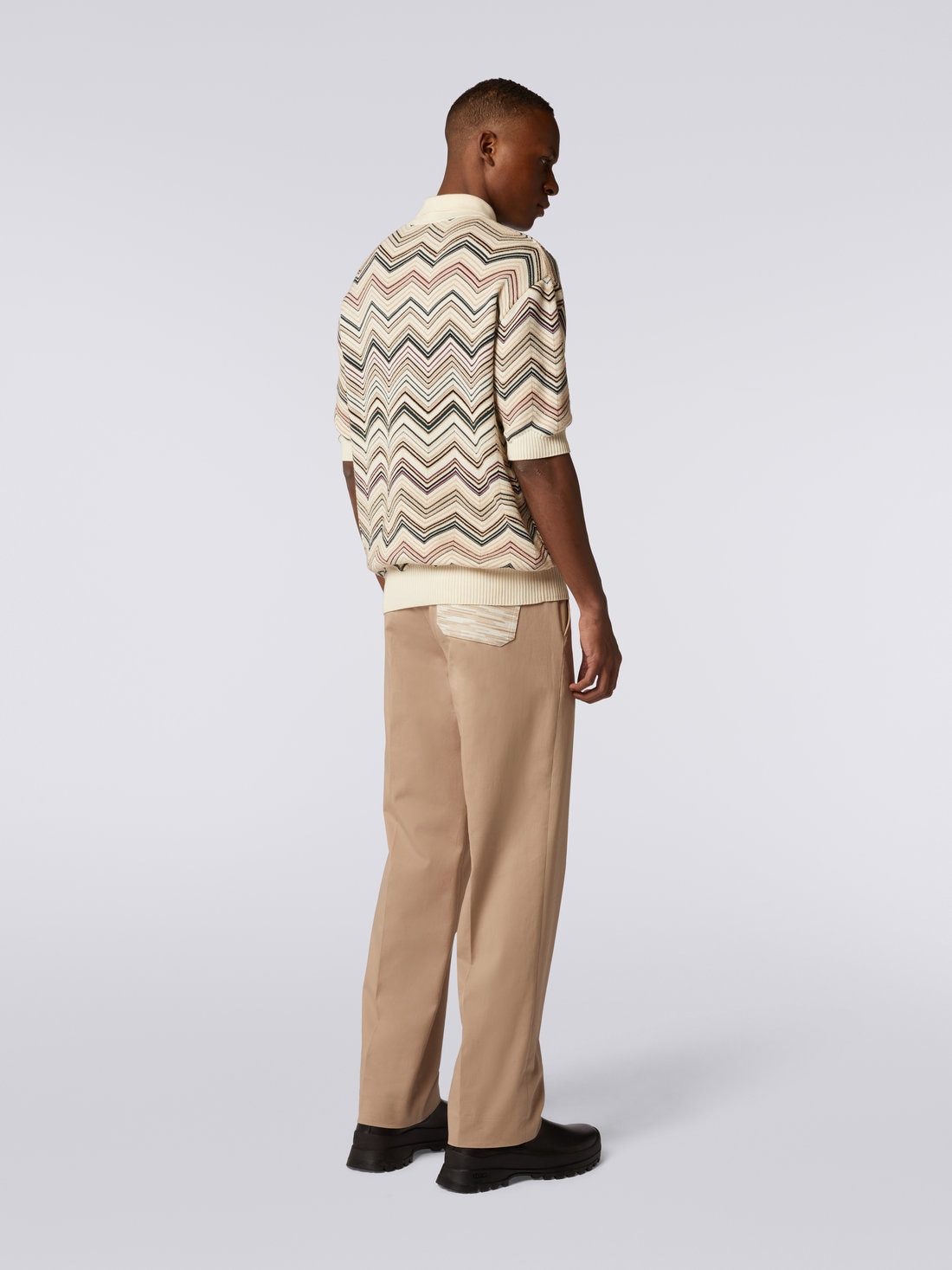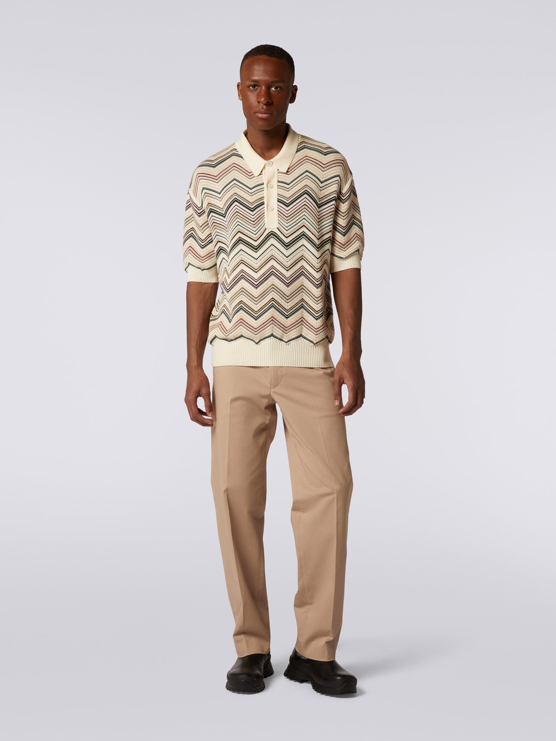 Polo a maniche corte in misto cotone chevron