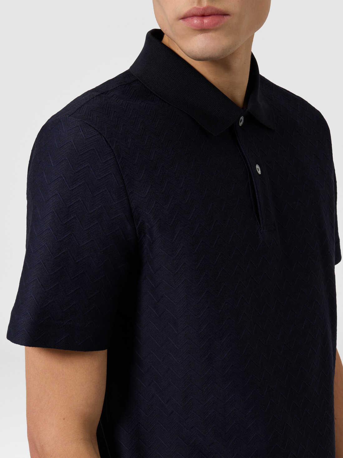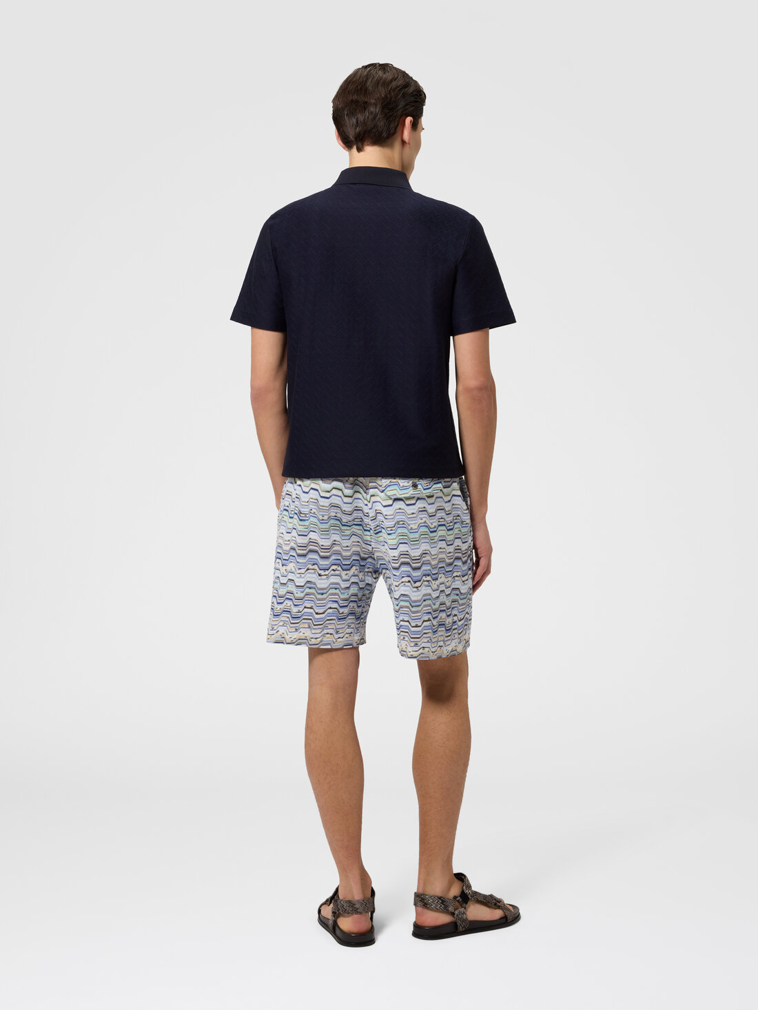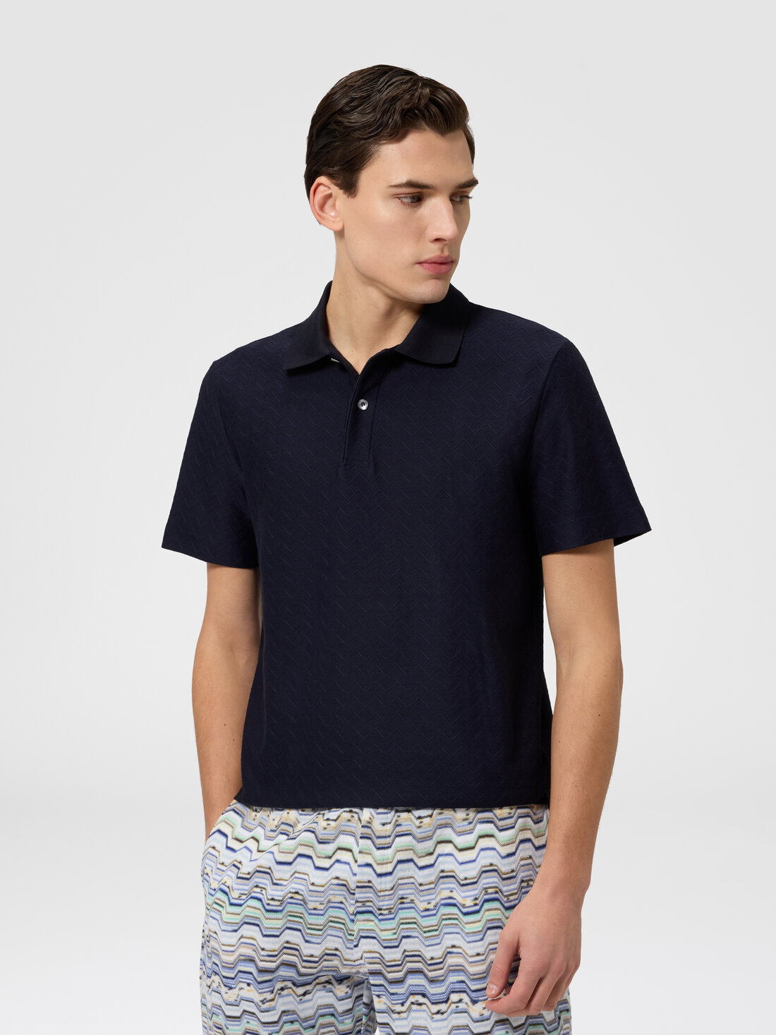 Il motivo zig zag tono su tono anima questa polo da uomo in cotone jacquard, arricchita da un colletto a righe che ne sottolinea il carattere distintivo. Un classico del guardaroba maschile reinterpretato con l’inconfondibile raffinatezza Missoni.
