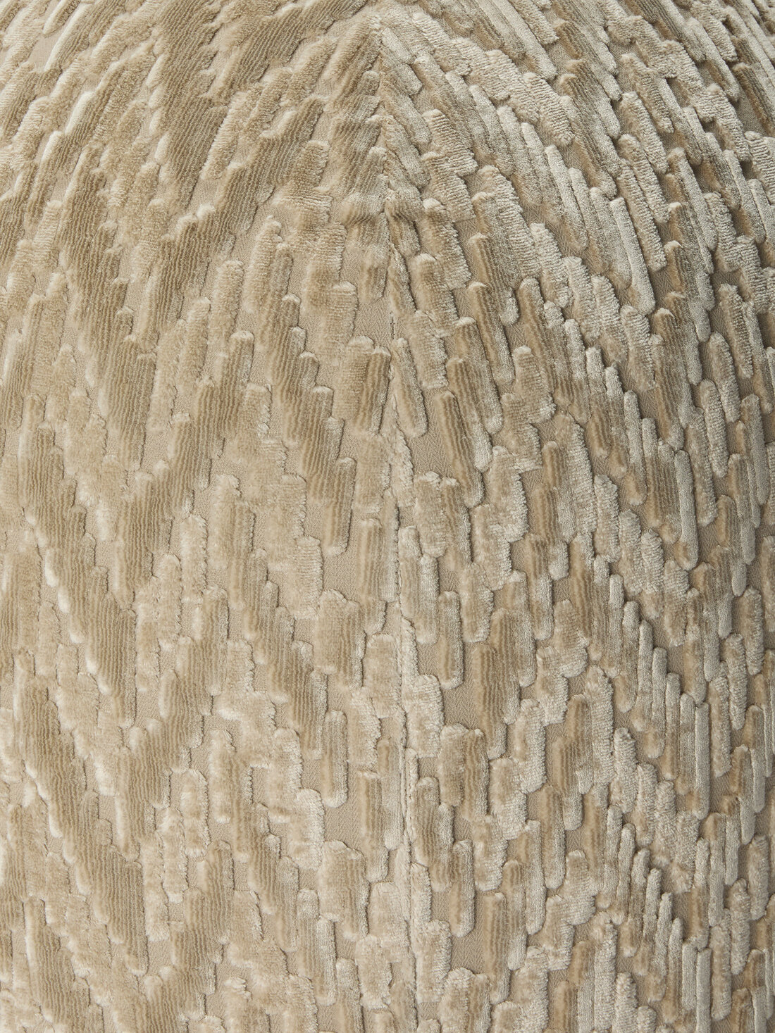 Il pouf Fossile 50x50 cm, realizzato in viscosa e cotone, è caratterizzato dal motivo zig zag tono su tono che dona profondità alla superficie. Un complemento d’arredo dal segno grafico essenziale, pensato per arricchire l’ambiente domestico con una presenza decorativa distintiva.