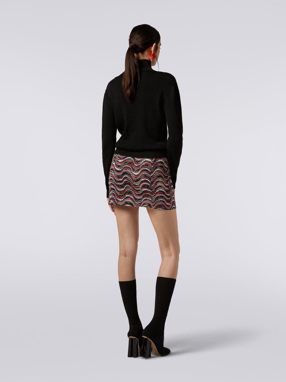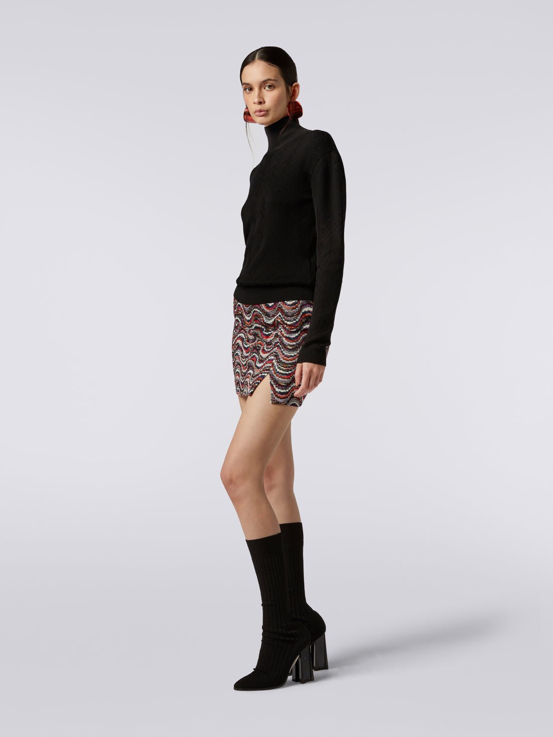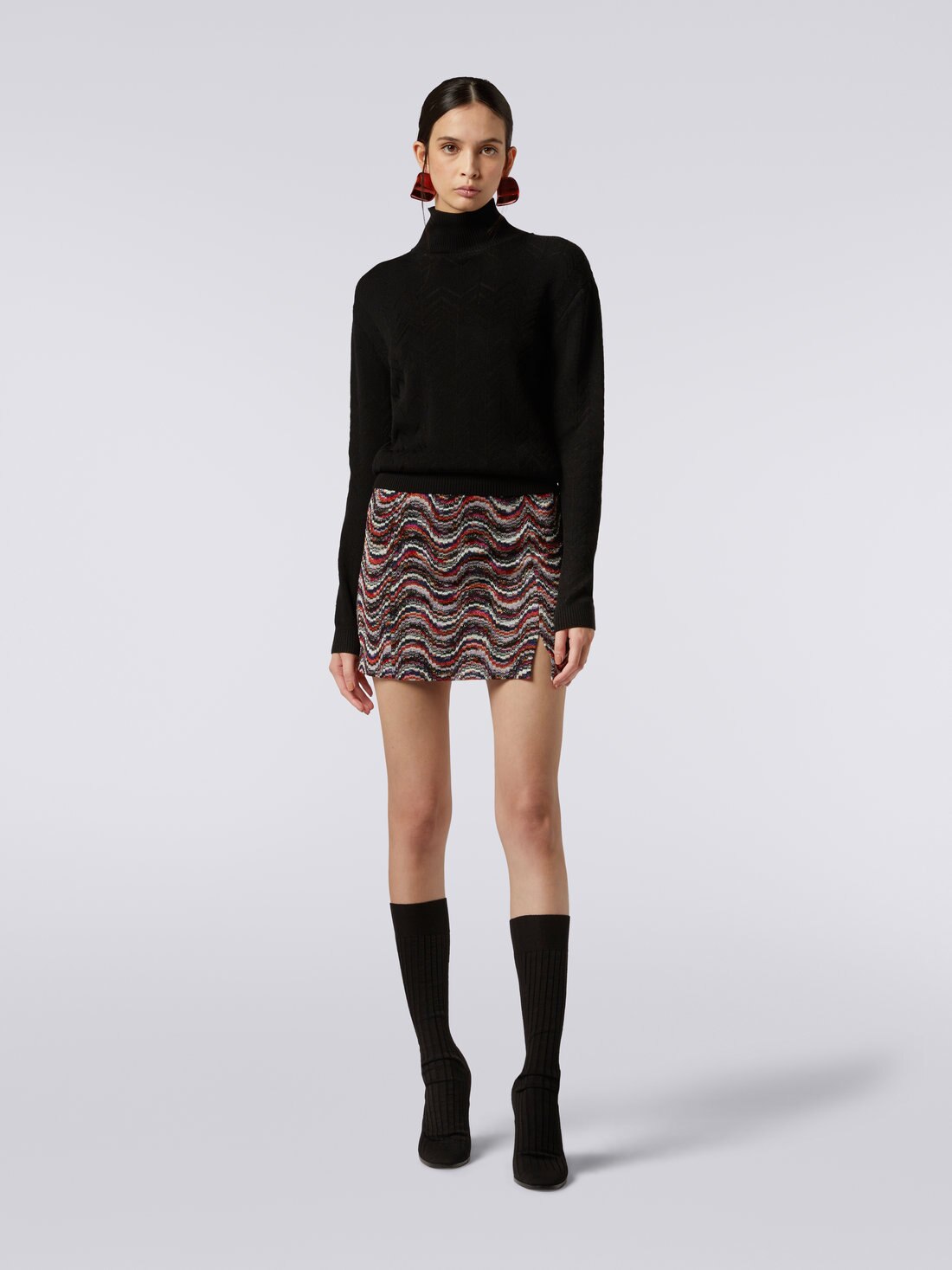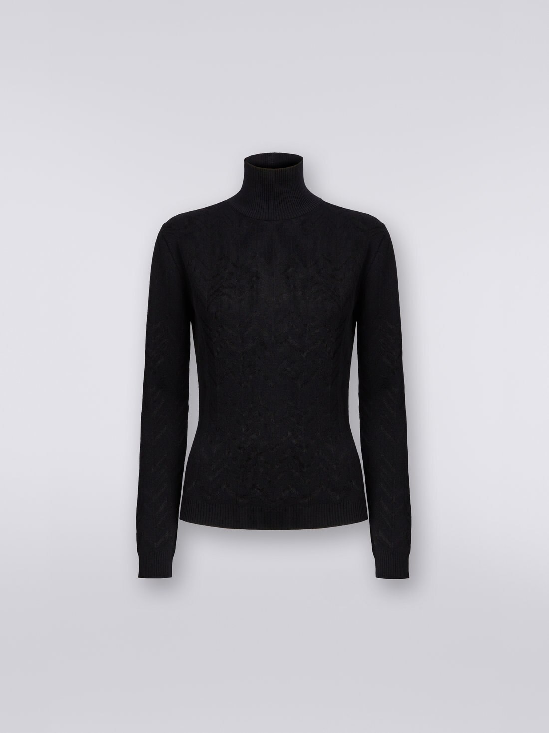 Il motivo chevron, che da sempre contribuisce alla riconoscibilità di Missoni, è il protagonista, in versione tonale, del pullover a collo alto da donna. Realizzato in maglia di lana e viscosa, il modello presenta lavorazione a costa inglese.