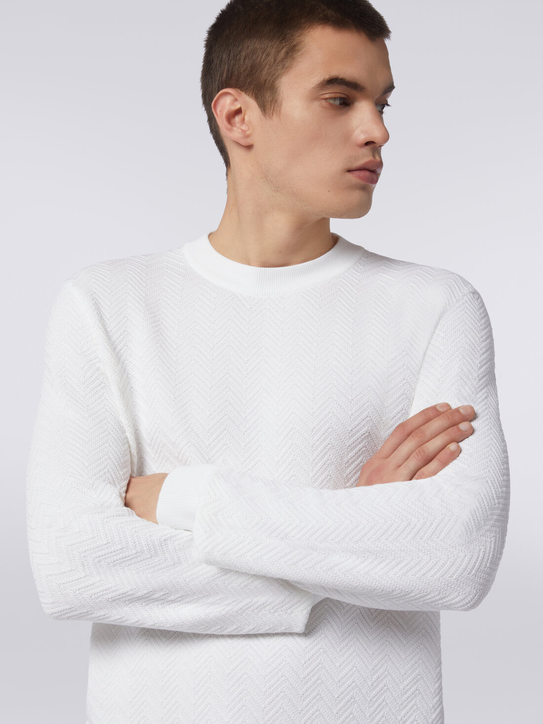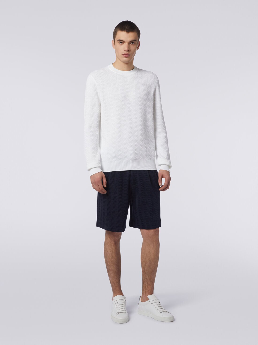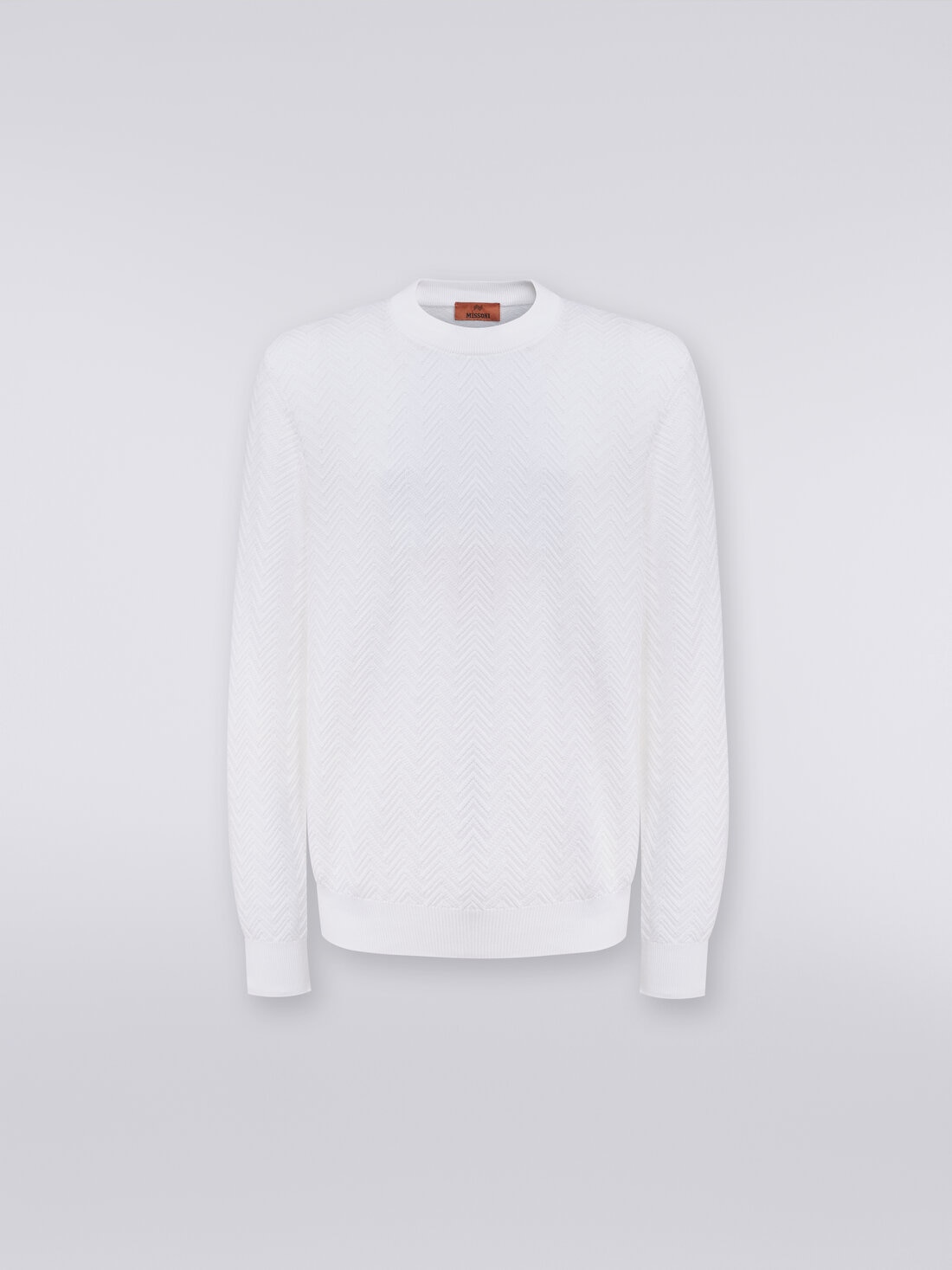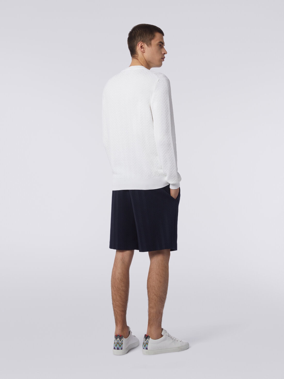 Se il lusso understatement avesse una forma sarebbe quella di questo pullover girocollo da uomo in maglia di cotone. Un capo raffinato e di sofisticato, caratterizzato dal motivo chevron e sottolineato dai profili a tinta unita.