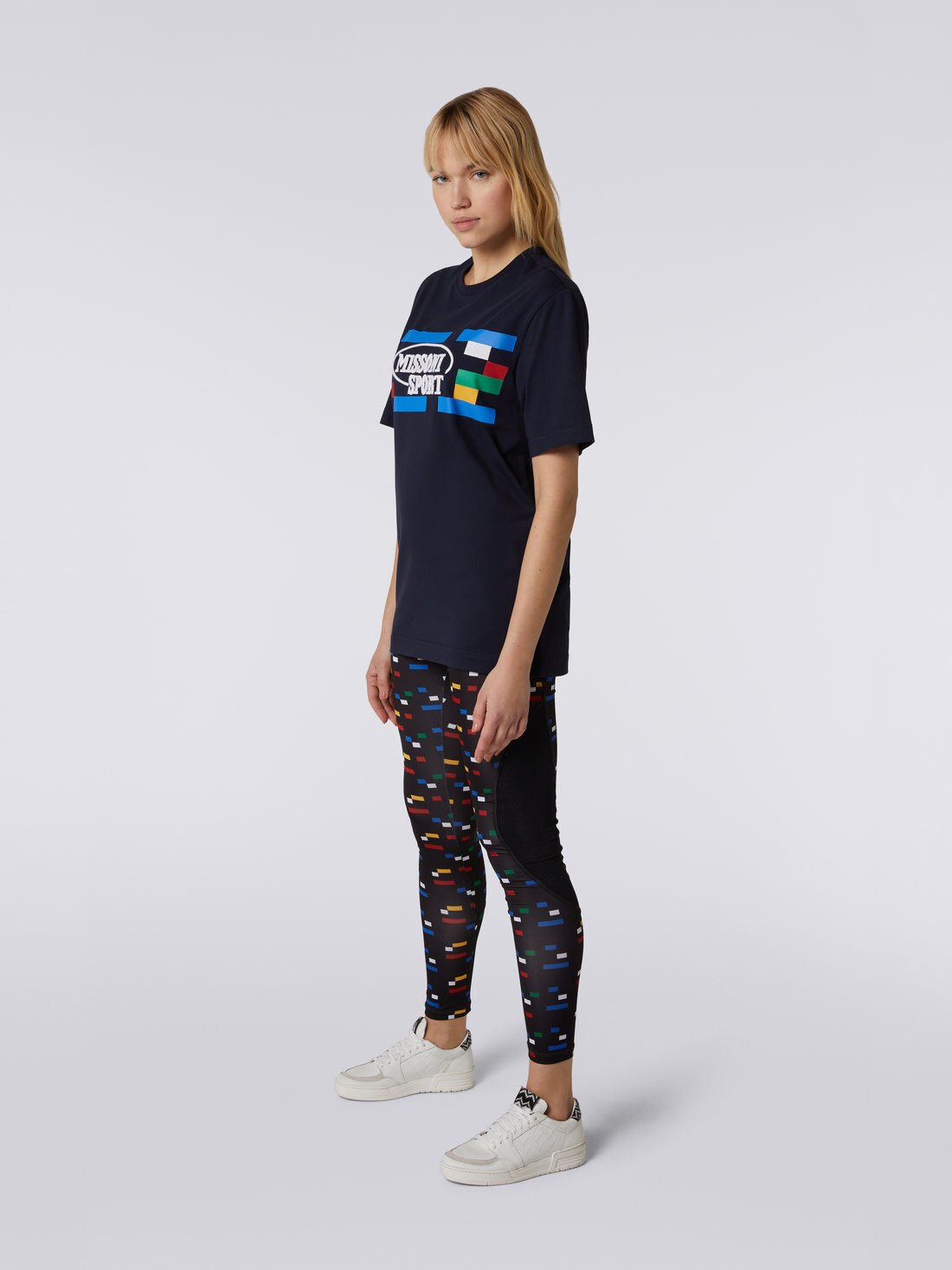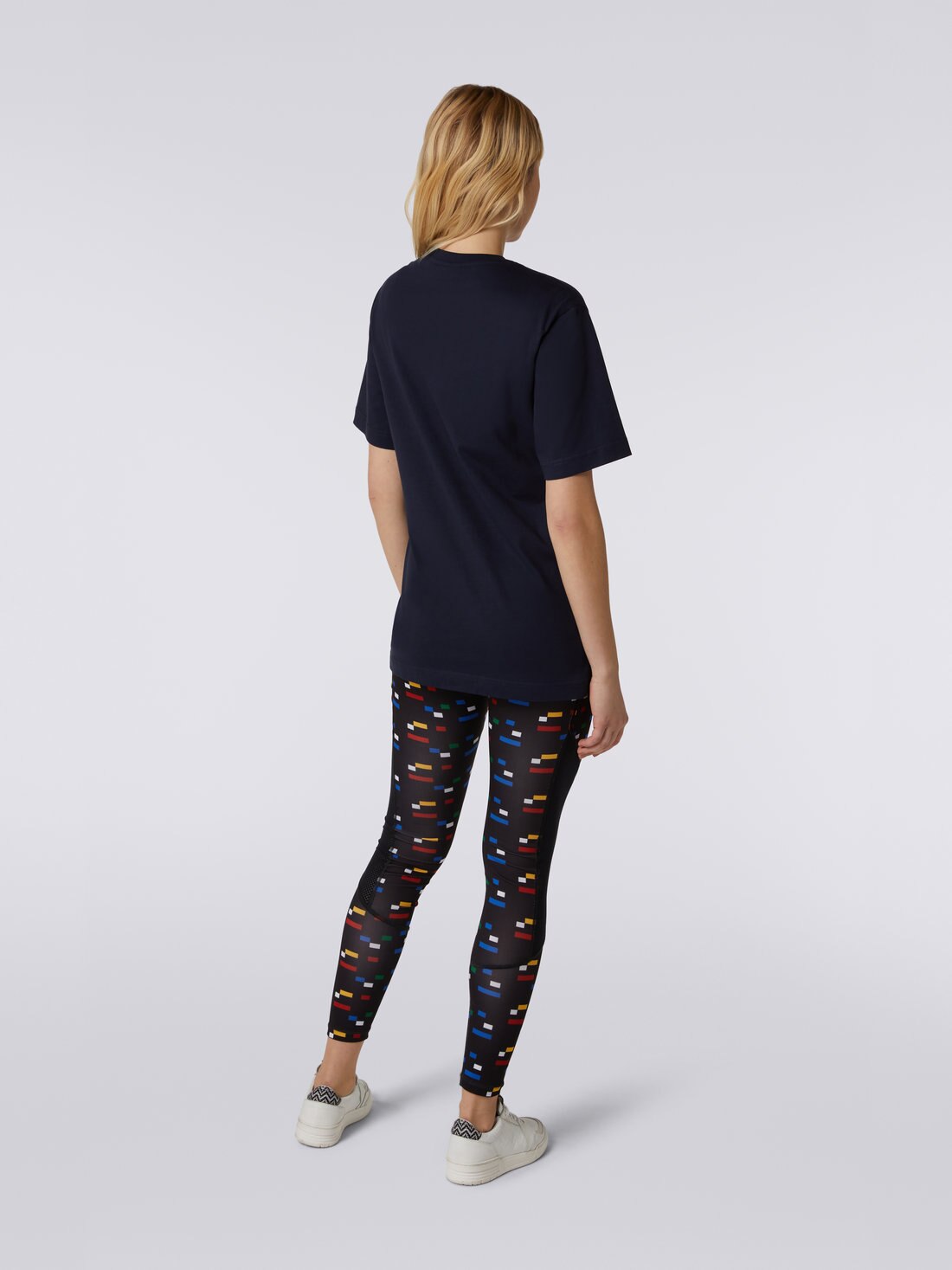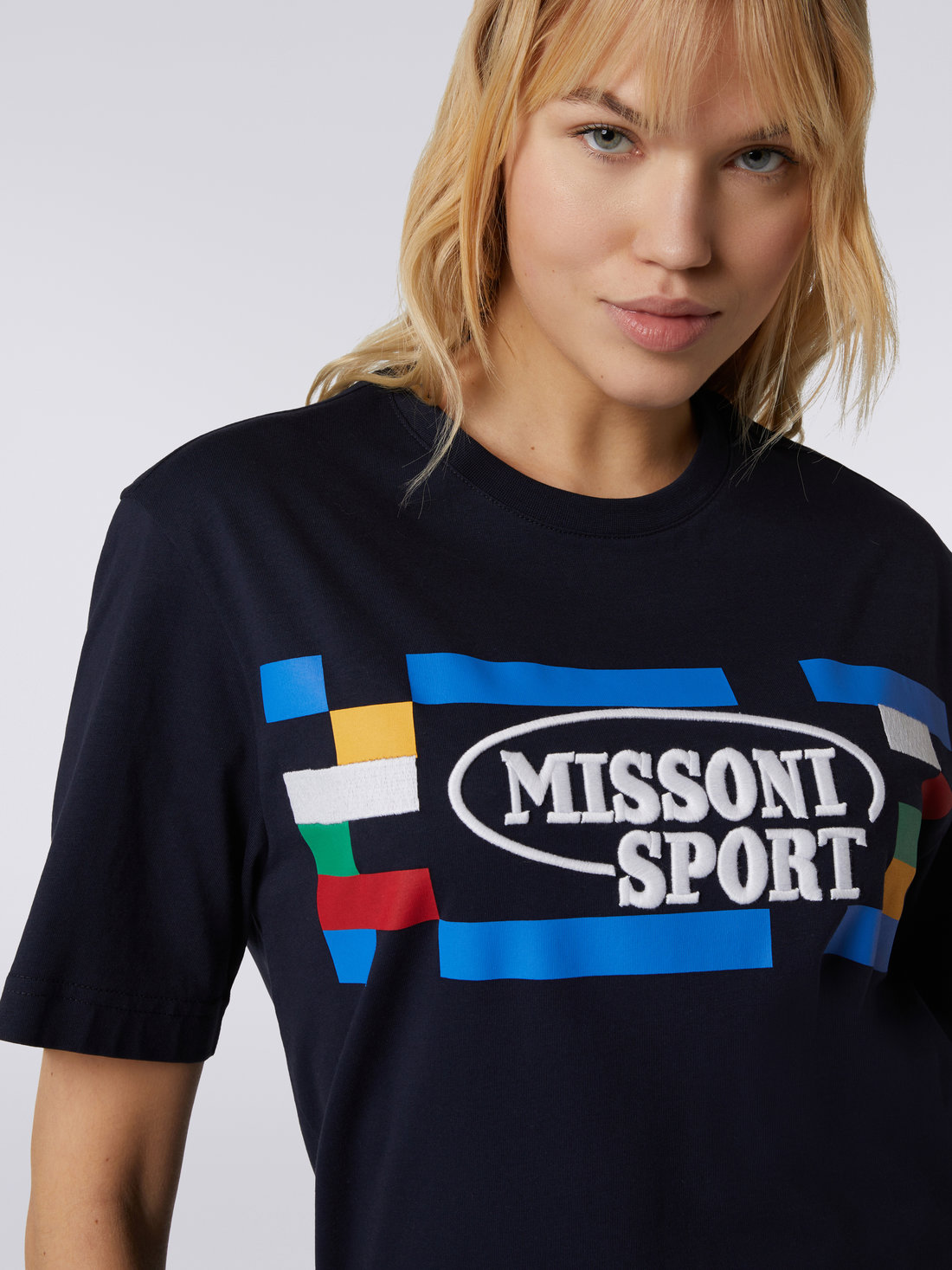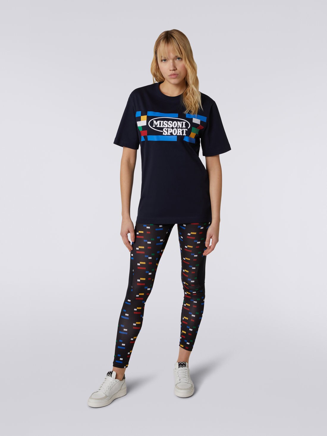 La t-shirt girocollo da donna a maniche corte è uno di quegli indispensabili di cui il guardaroba casual non può fare a meno. Il modello firmato Missoni Sport, realizzato in puro cotone, presenta ben visibili i codici del brand: è infatti arricchito dalla stampa con grafica pixel e macro-logo che campeggia sul petto.