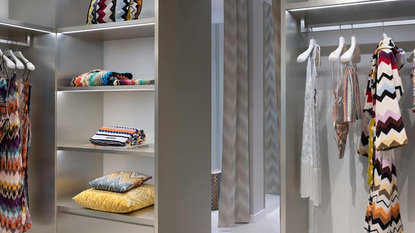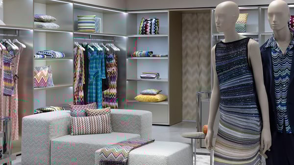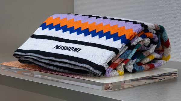 Missoni, casa rinomata per la sua eccellenza nella moda italiana, è stata fondata nel 1953 da Ottavio e Rosita Missoni. Il marchio è famoso per la sua maglieria unica, realizzata con una varietà di tessuti in un caleidoscopio di motivi colorati, come zigzag, strisce, geometrie e motivi floreali astratti, accessori bohémien e costumi da bagno imperdibili.