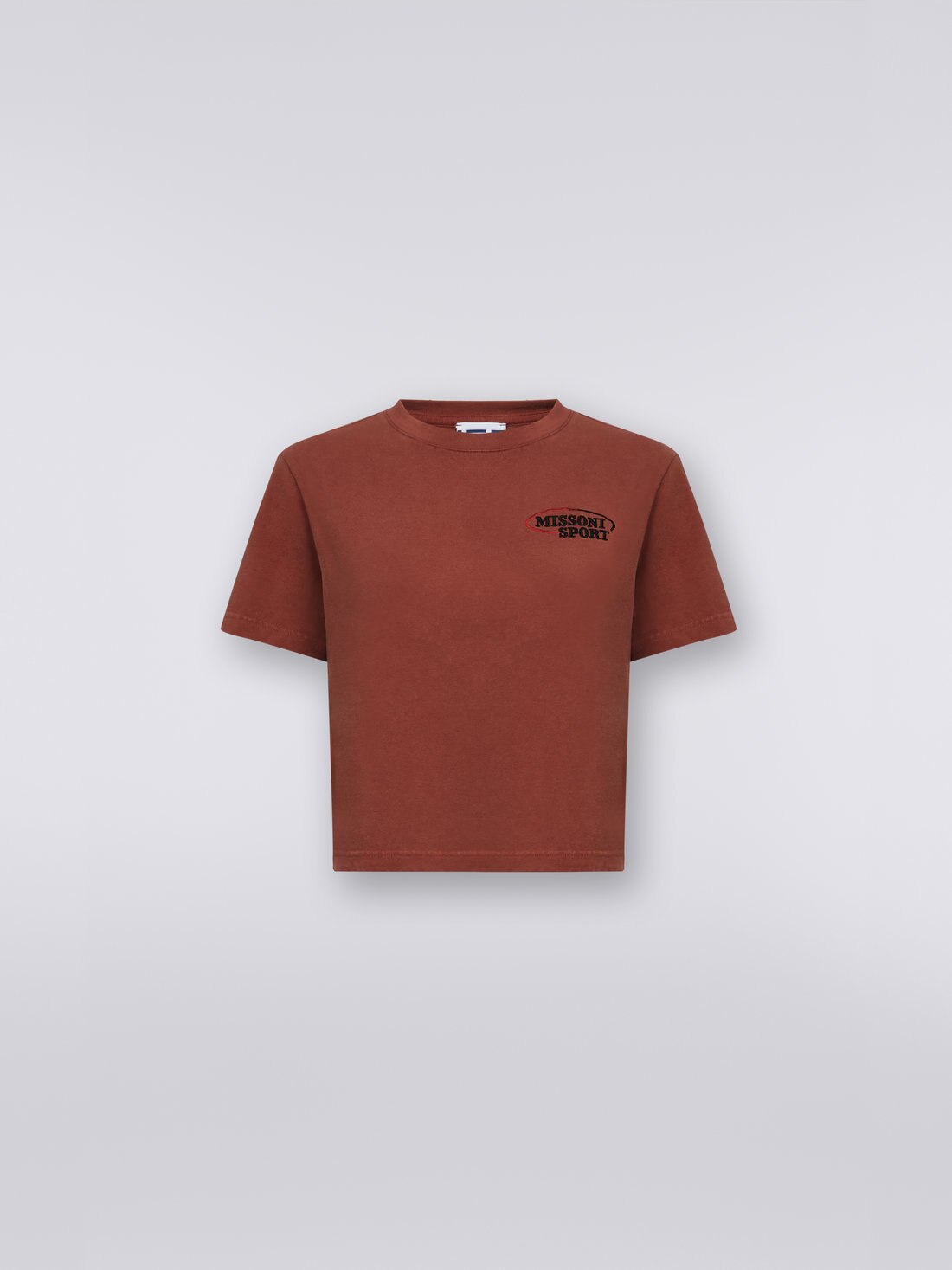 クロップドTシャツ コットンジャージー ロゴ刺繍入り