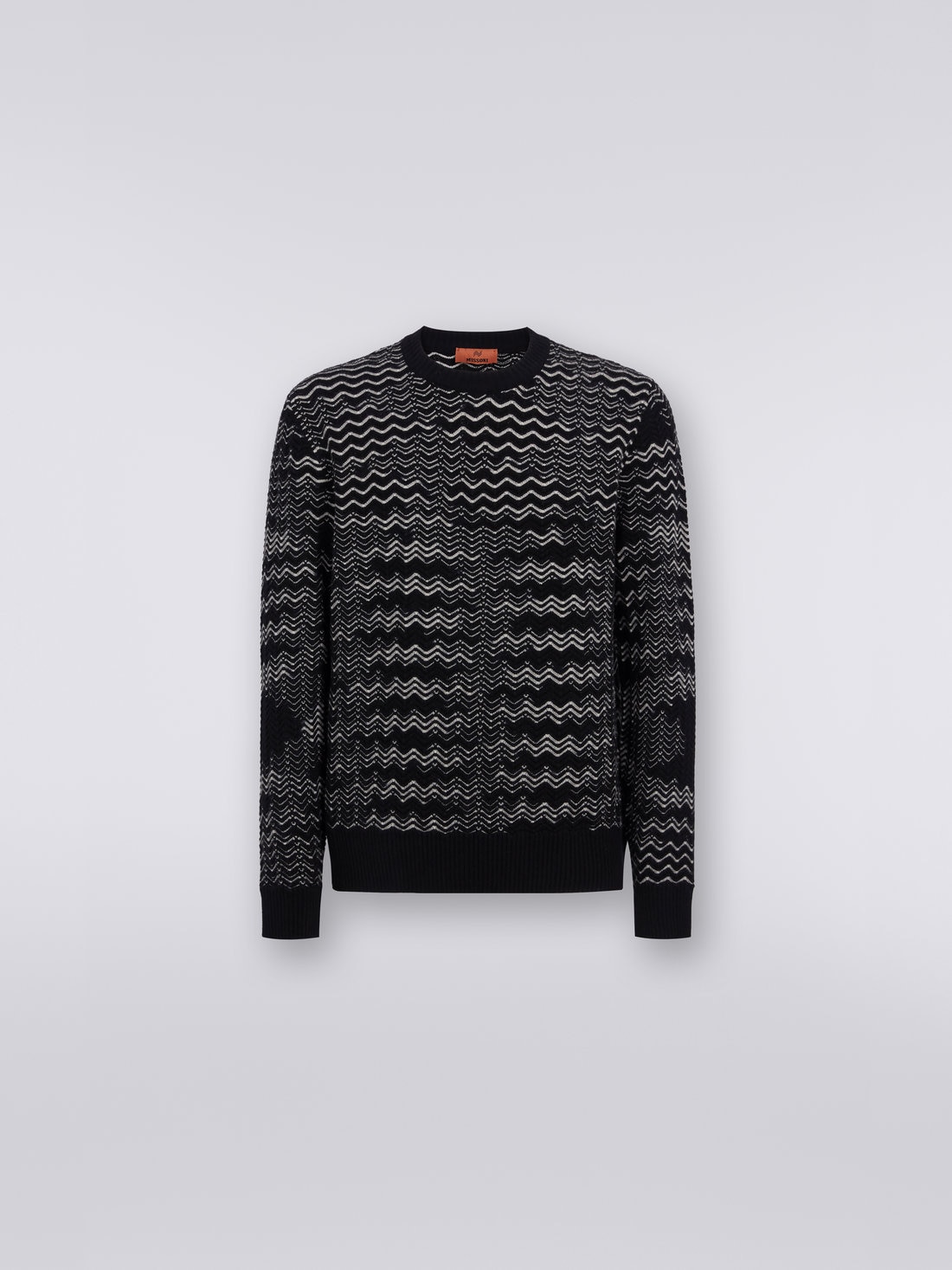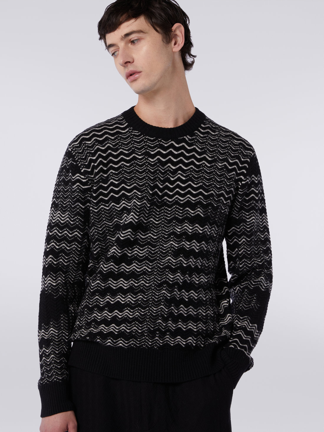 セーター ラウンドネック ウールブレンド シェブロン スラブ入り