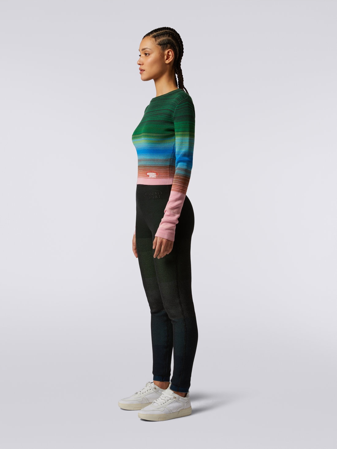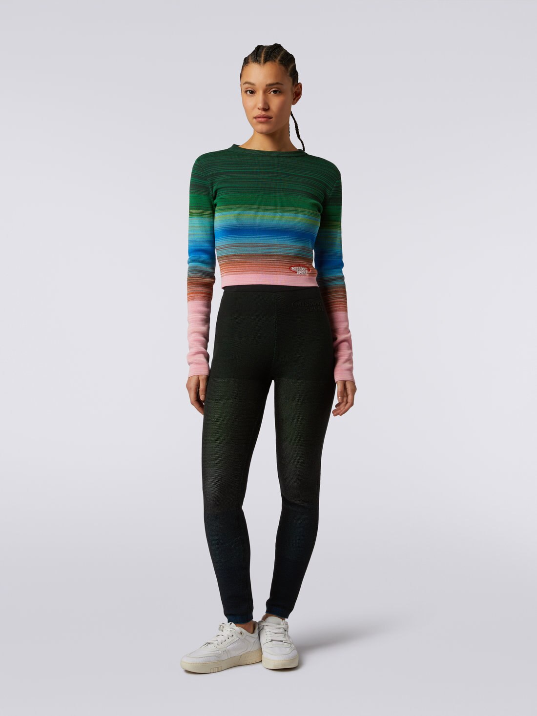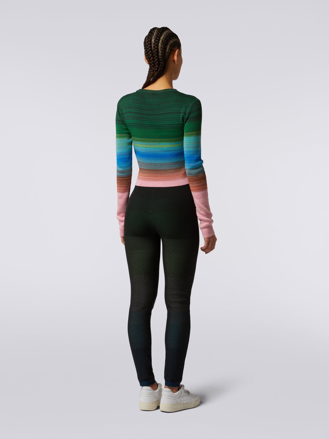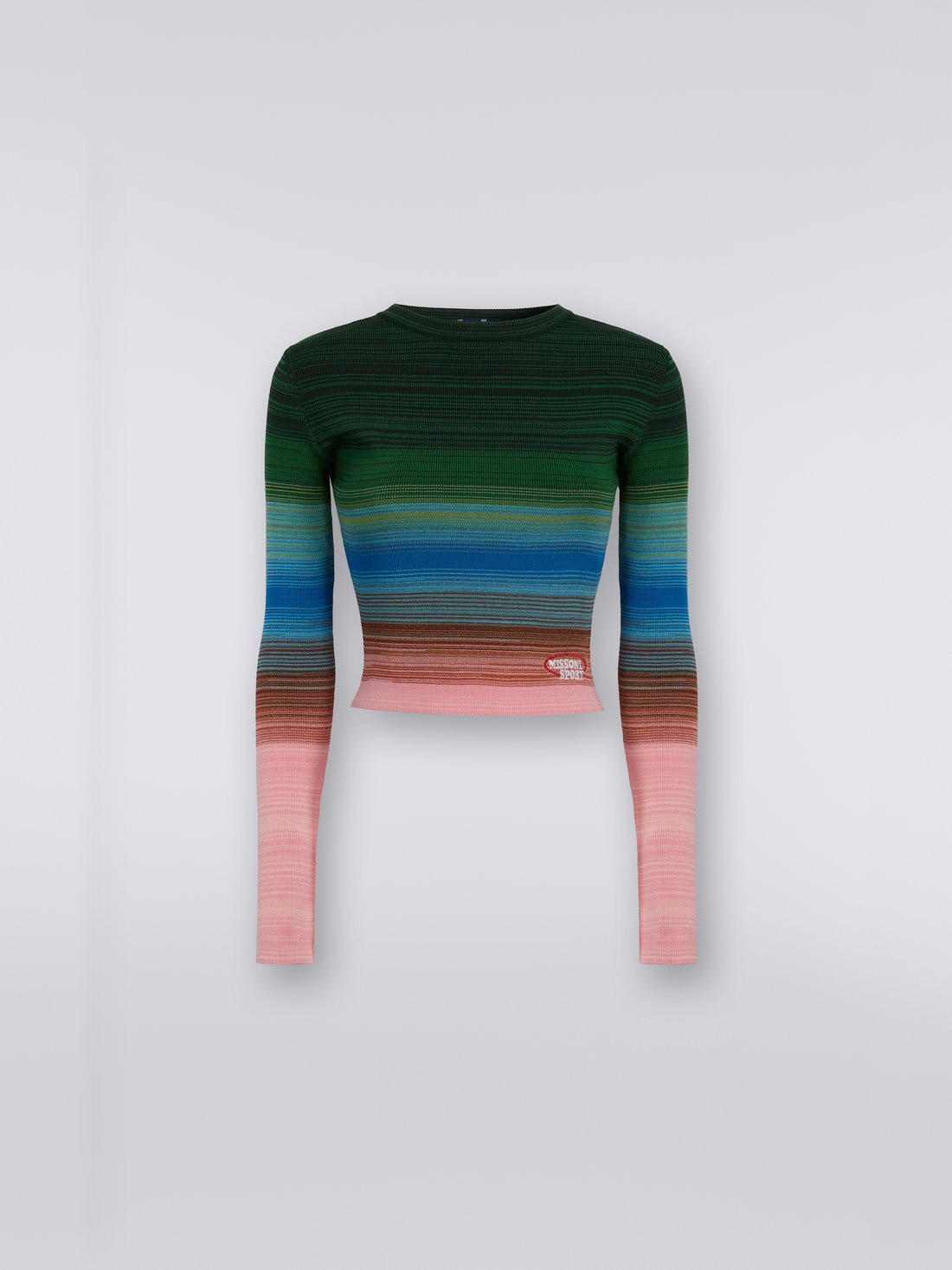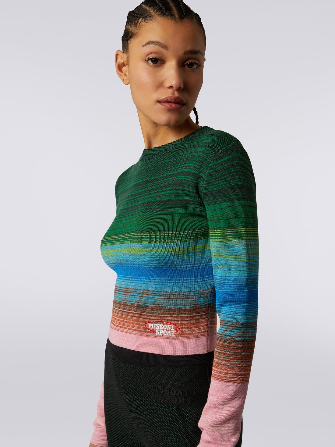 ニット ラウンドネック ロングスリーブ コットン&ビスコース ストライプ