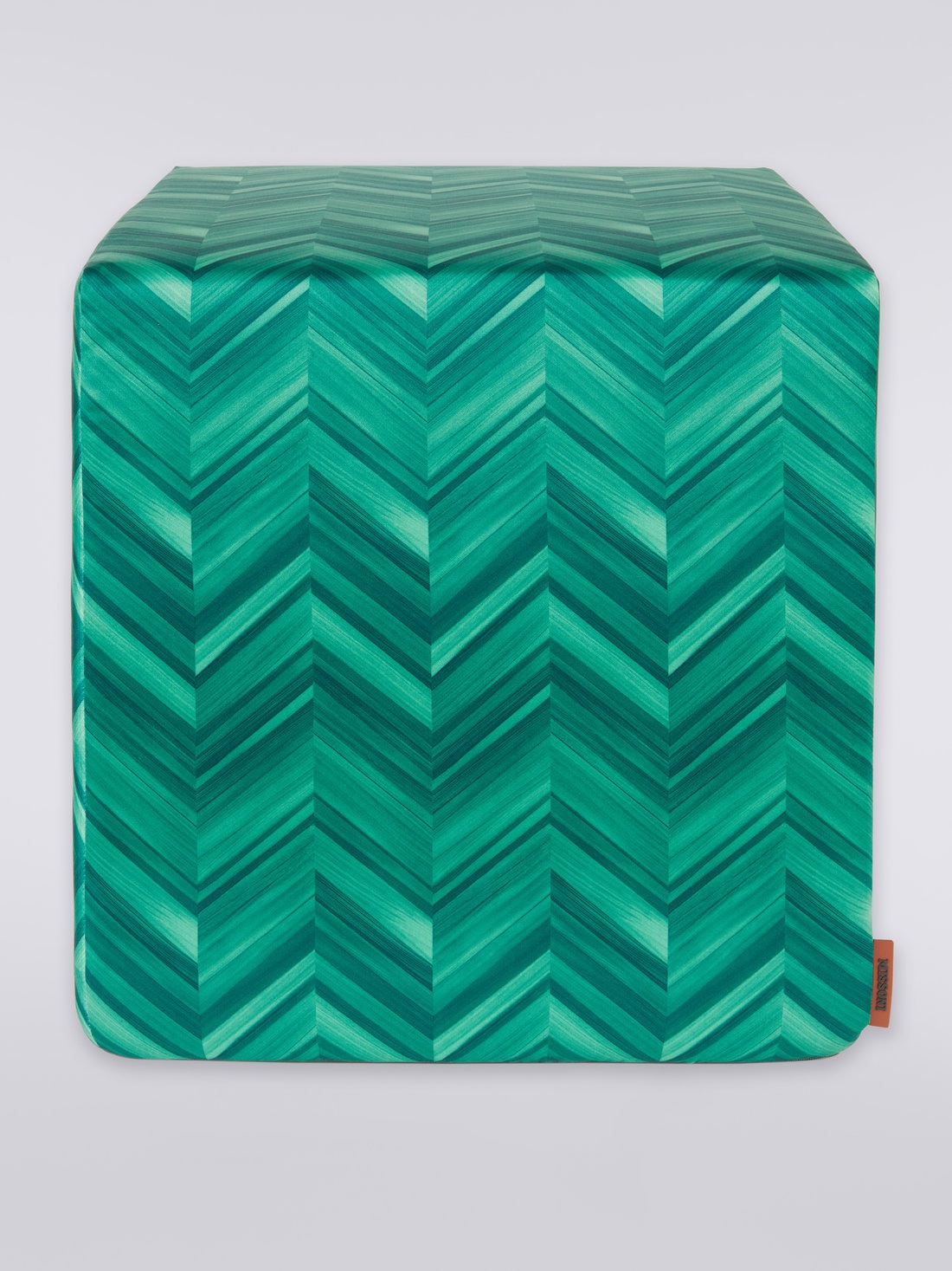 ぼかしたようなジグザグが描く魅力的なシェブロンモチーフが目を引く立方体のフットスツールLayersです。40x40x40cm。シルクのような風合いのコットンサテン製。MissoniHomeならではのスタイルであらゆる空間に温かみをプラスするインテリアアイテムです。
