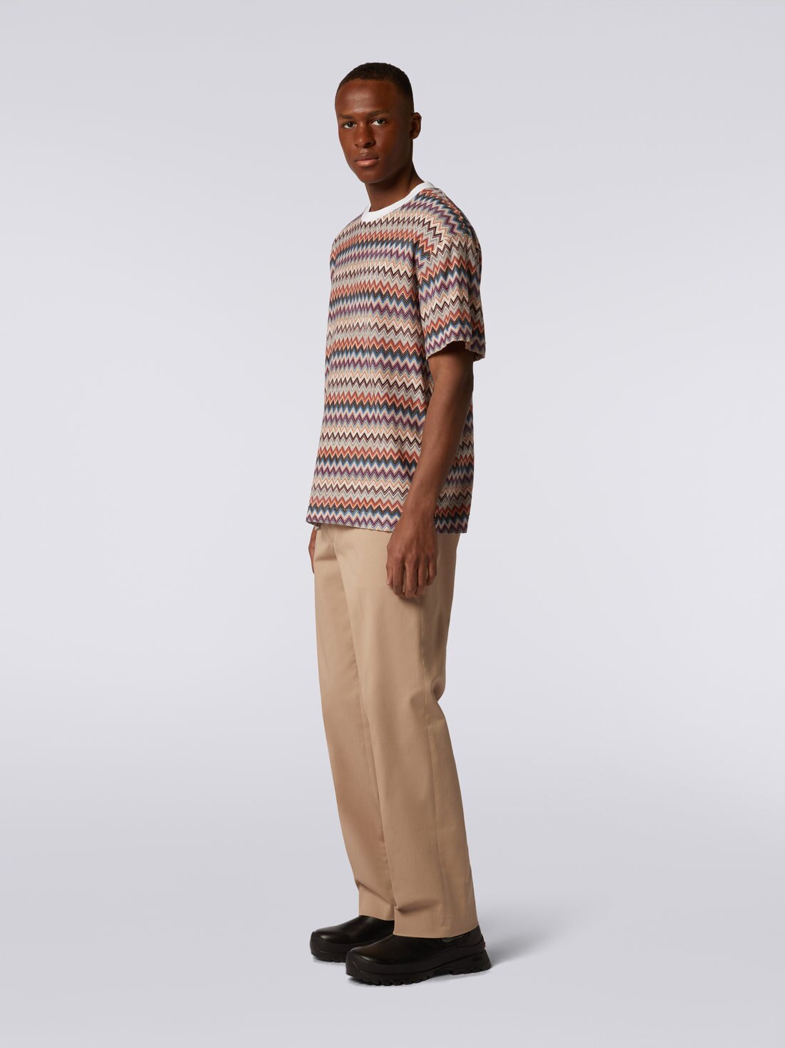 Tシャツ ラウンドネック コットン&ビスコース シェブロン