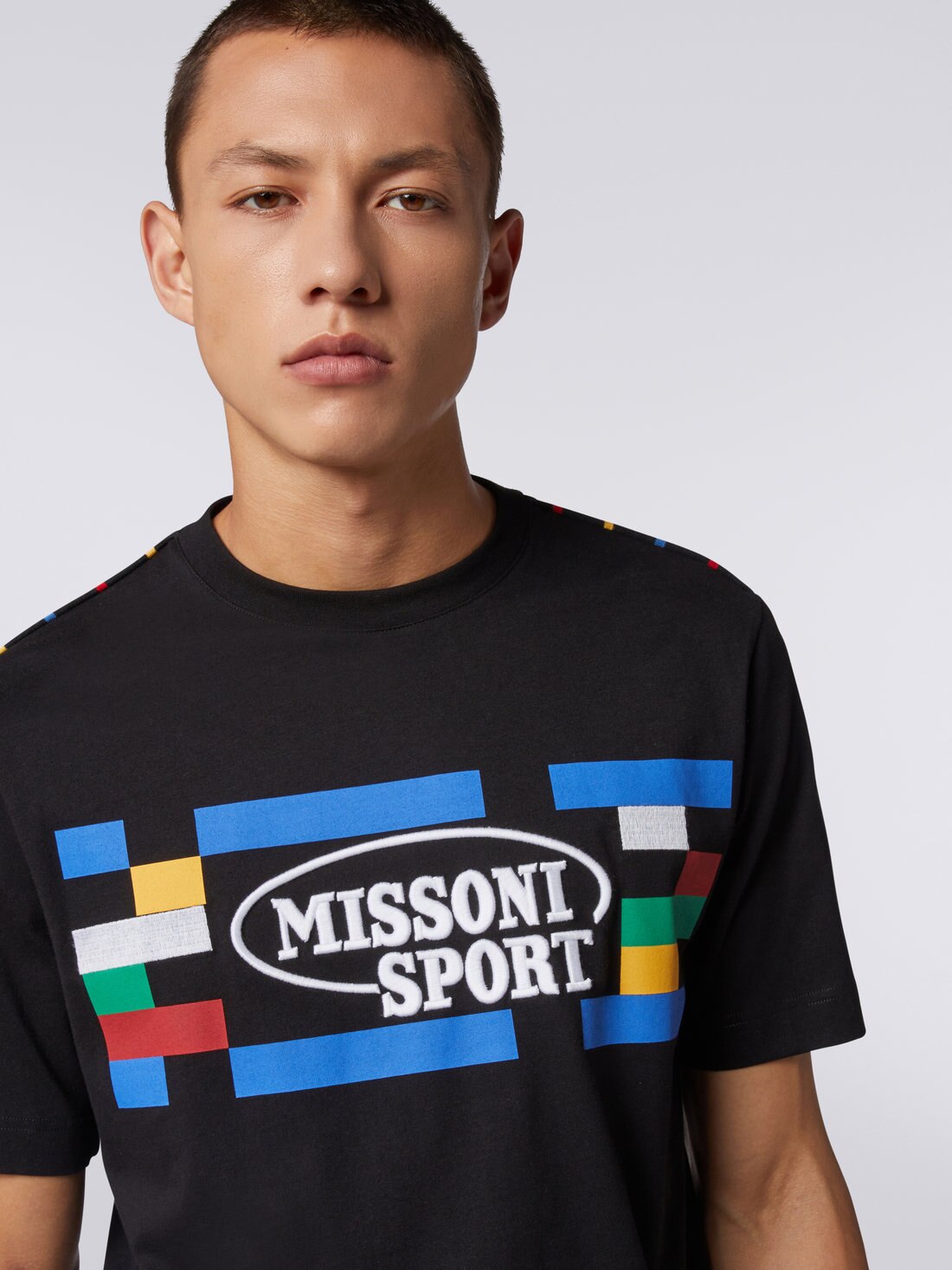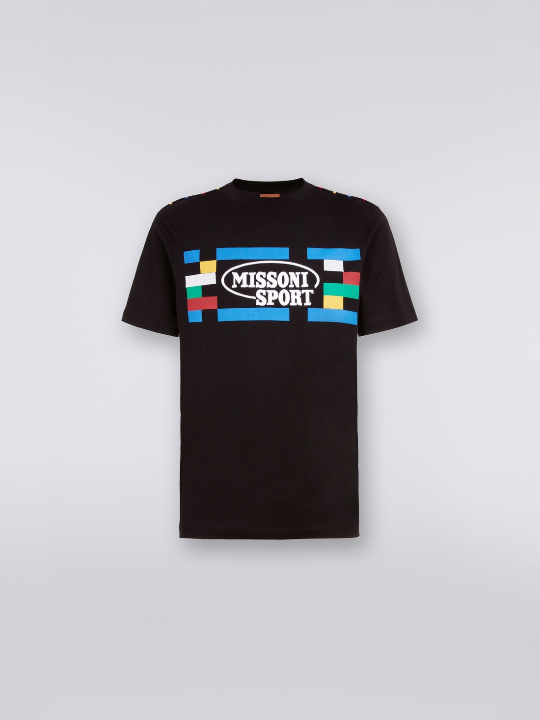 1990年に誕生したブランドのレガシーロゴを巧みにアレンジしたラウンドネックのメンズTシャツです。ショートスリーブでピュアコットン製。まったく異なるイメージをご堪能ください。Missoni Sportのヘリテージにヒントを得たプリント、刺繍、パイピングが彩りを添えています。